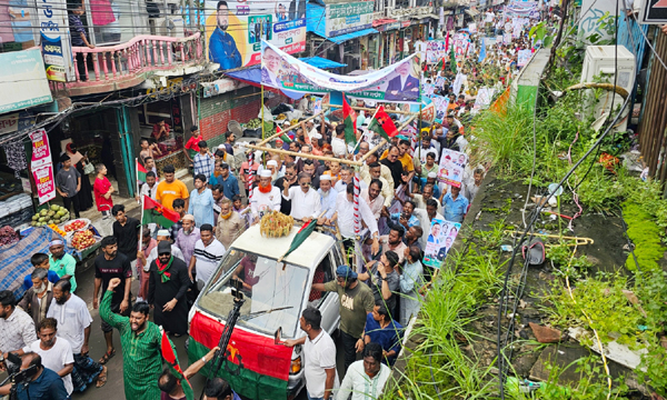 বৃষ্টি উপেক্ষা করে হাজারো নেতাকর্মীর অংশগ্রহণ